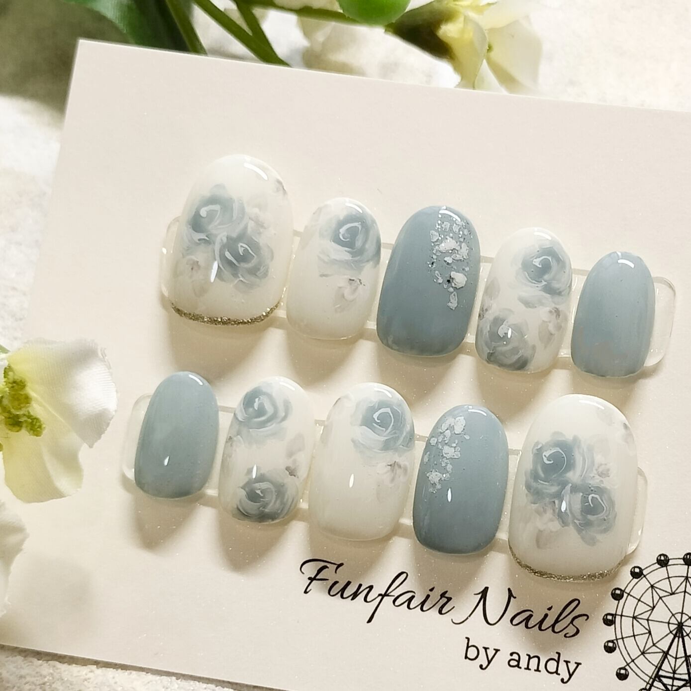 ローズ 薔薇 ブルー ネイルチップオーダー オーダーネイル ネイル ネイルアート つけ爪 付け爪 オーダー 可愛い かわいい 大人可愛い ガーリー 個性的 個性 おしゃれ お正月 成人式 卒業式 結婚式 ブライダル ドレス 前撮り 袴 デート 着物 着物ネイル 和装ネイル 着物女子 和 フリル シフォン フリルネイル シフォンネイル お菓子ネイル チョコネイル チョコレート レリーフ カメオ アンティーク ゴシック クラシカル クラシック ロリィタ ロリータ 原宿系 原宿 3D 3Dアート 立体 手書き 手描き