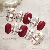 クラシカルカフェチェック(ボルドー) 〜 ネイルチップ チェック ボルドー 〜