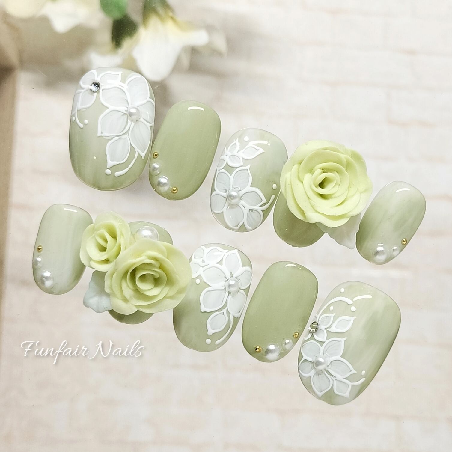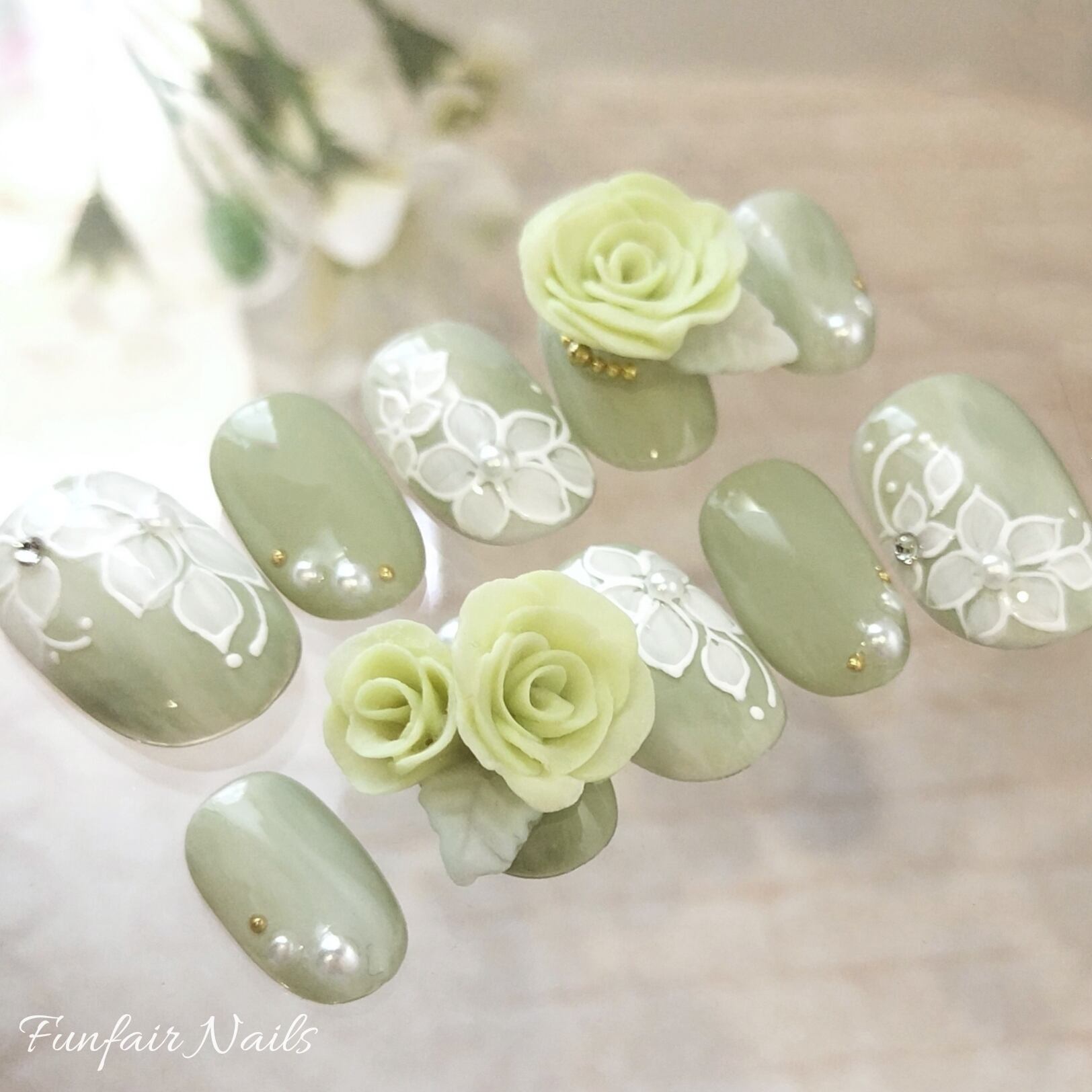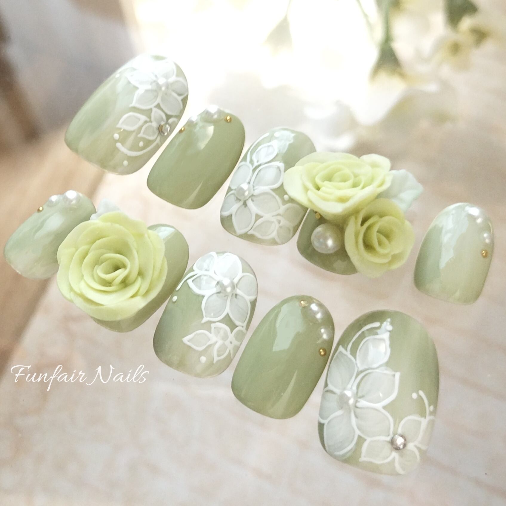 ローズ 薔薇 グリーン ネイルチップ ネイルチップオーダー オーダーネイル ネイル ネイルアート つけ爪 付け爪 オーダー 可愛い かわいい 大人可愛い ガーリー 個性的 個性 おしゃれ お正月 成人式 卒業式 結婚式 ブライダル ドレス 前撮り 袴 デート 着物 着物ネイル 和装ネイル 着物女子 和 フリル シフォン フリルネイル シフォンネイル お菓子ネイル チョコネイル チョコレート レリーフ カメオ アンティーク ゴシック クラシカル クラシック ロリィタ ロリータ 原宿系 原宿 3D 3Dアート 立体 手書き 手描き
