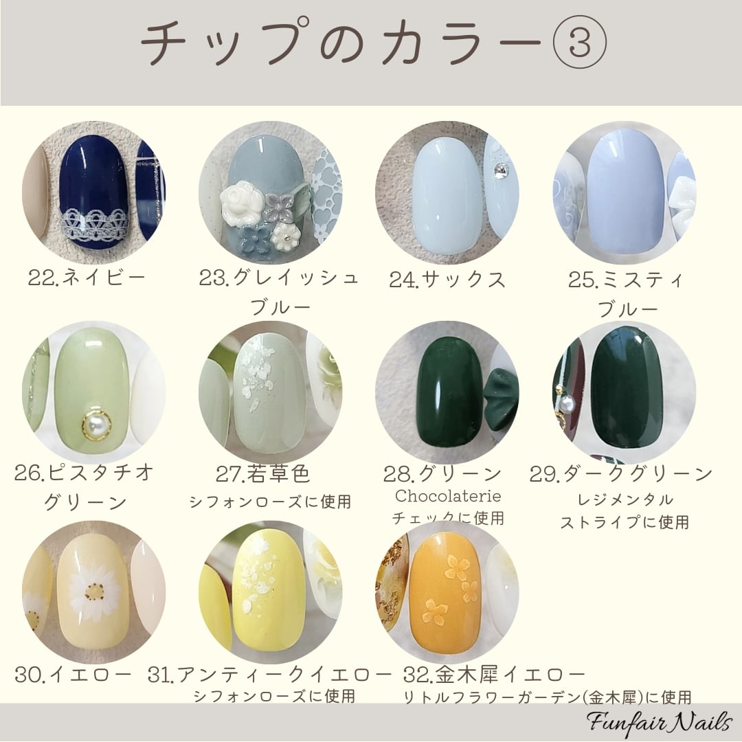 「ワンカラーチップ」( https://www.funfairnails.shop/items/88307939 )を、