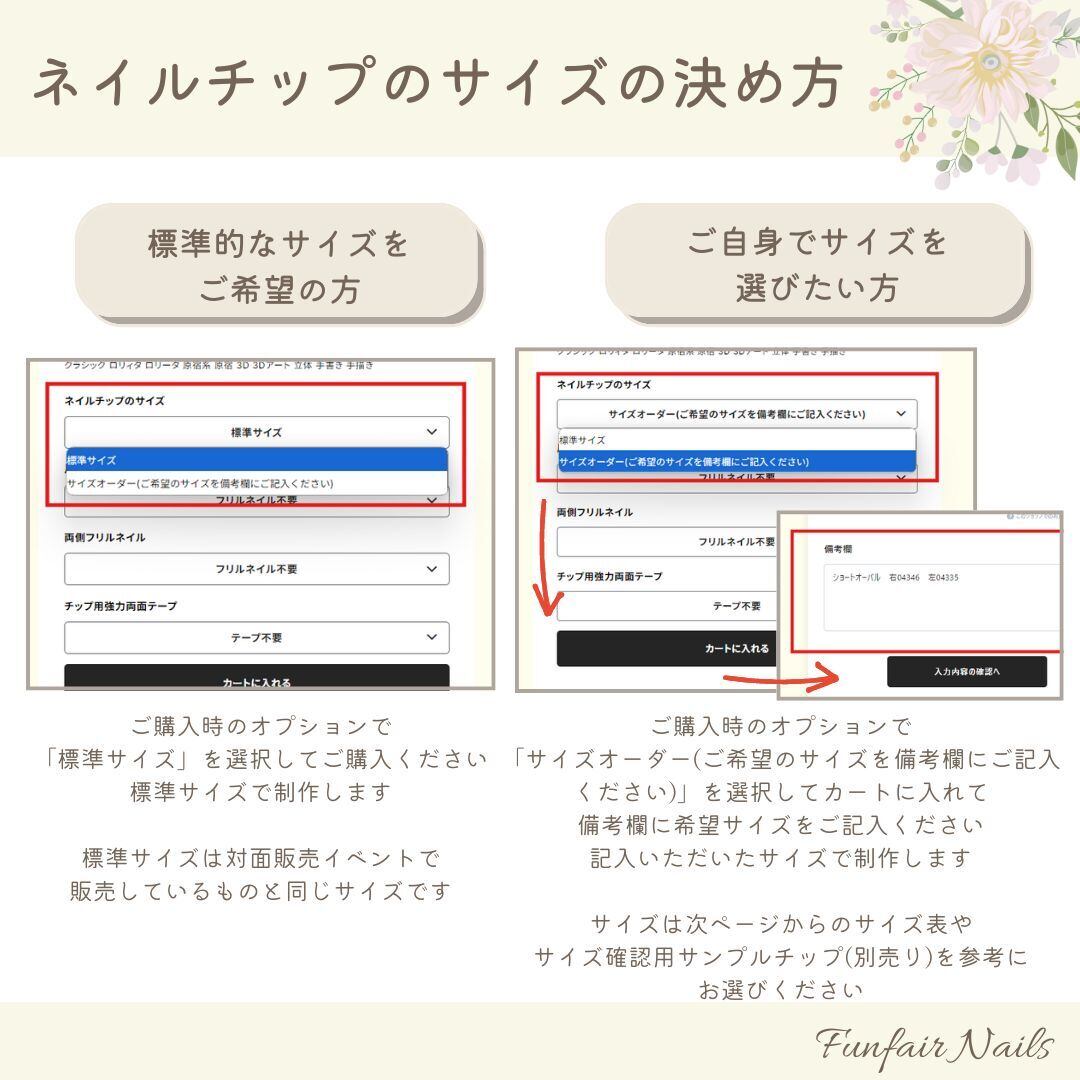 ※サイズのご記入が無い場合は各デザインに一番おすすめなチップの種類で、
