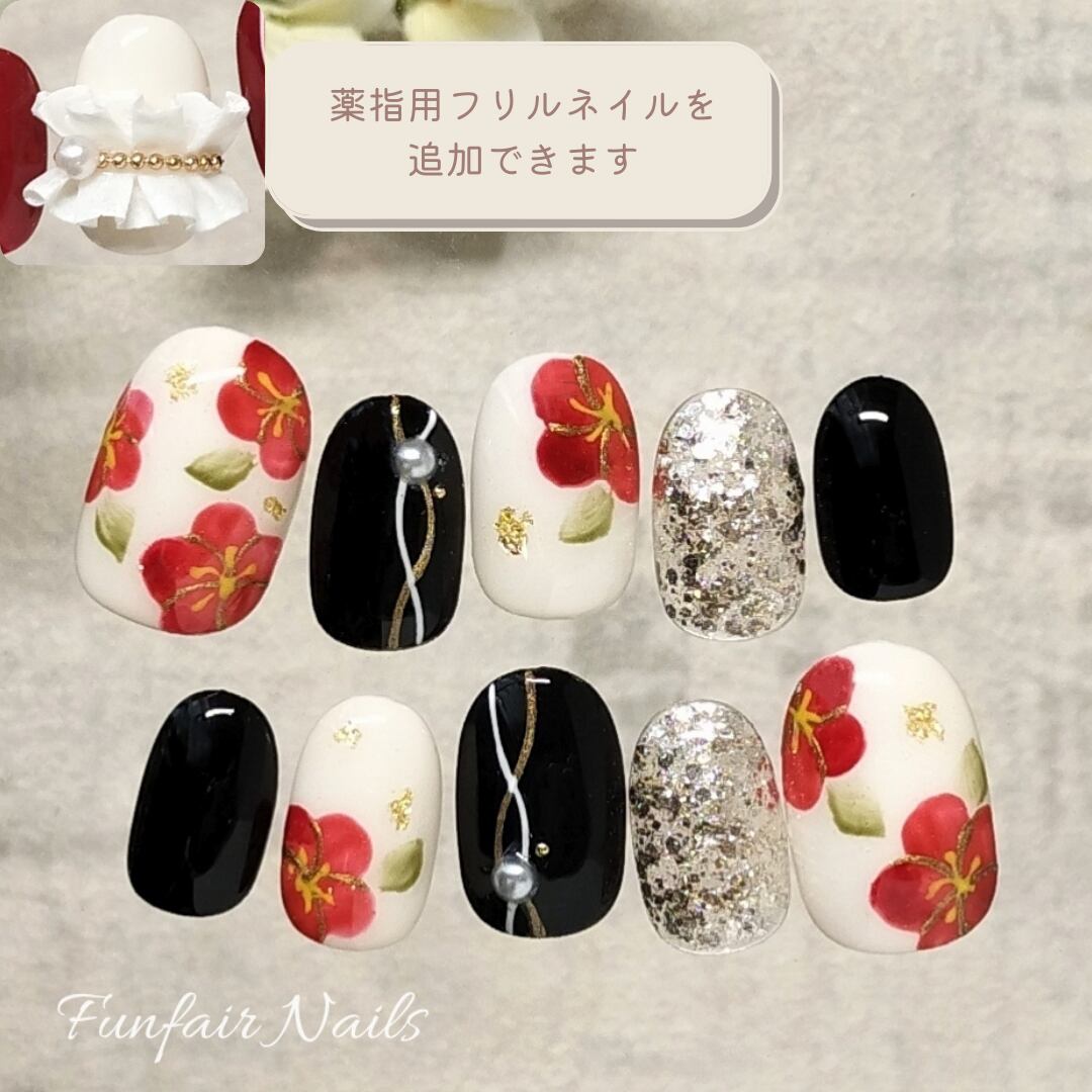 オプションで薬指用のフリルネイルを追加することができます