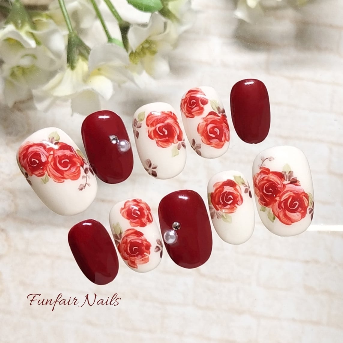 ローズクラシック(ボルドー) 〜 ネイルチップ 薔薇 ボルドー 〜