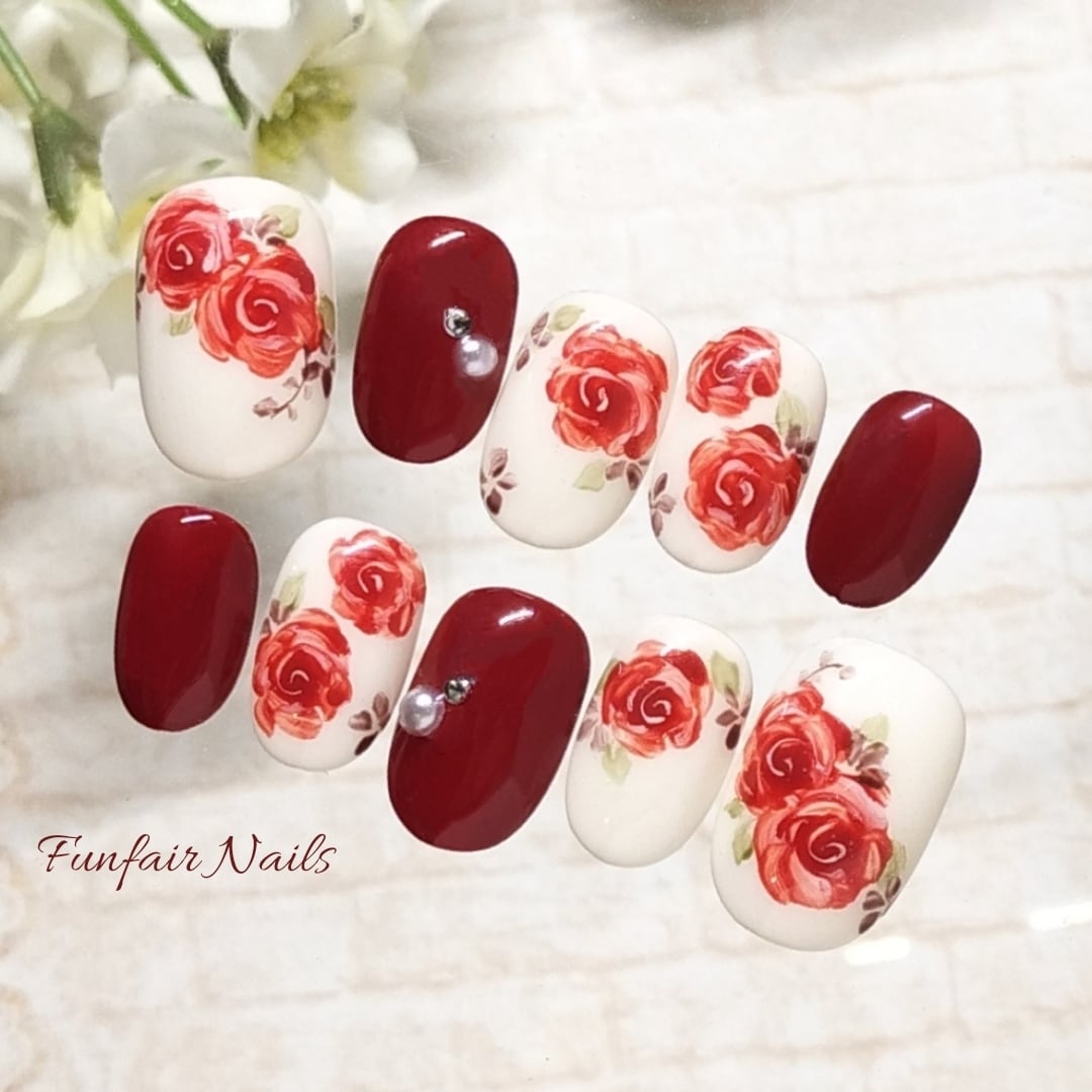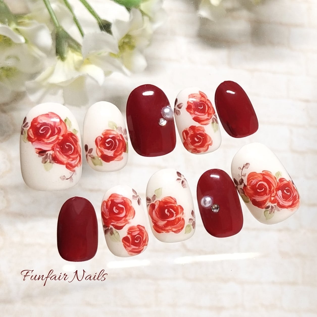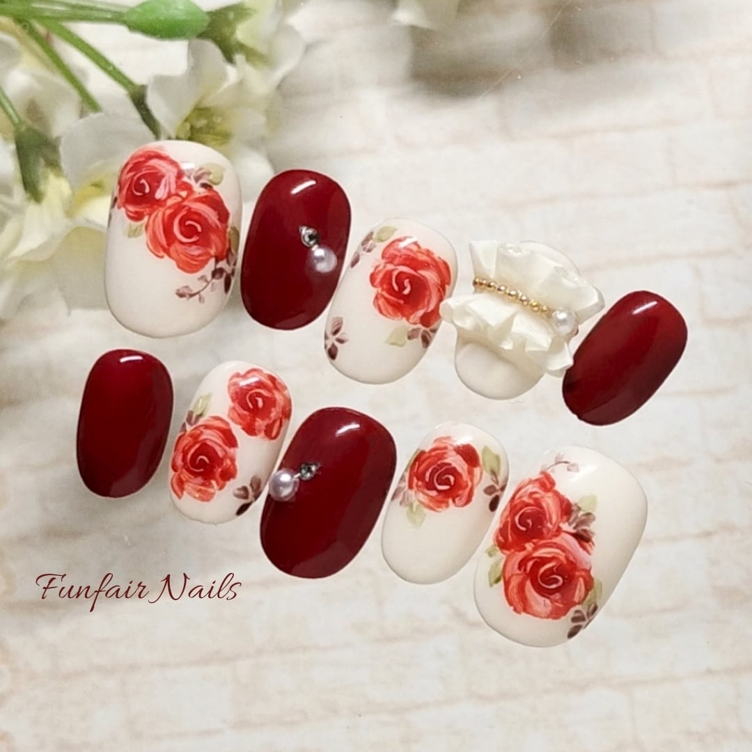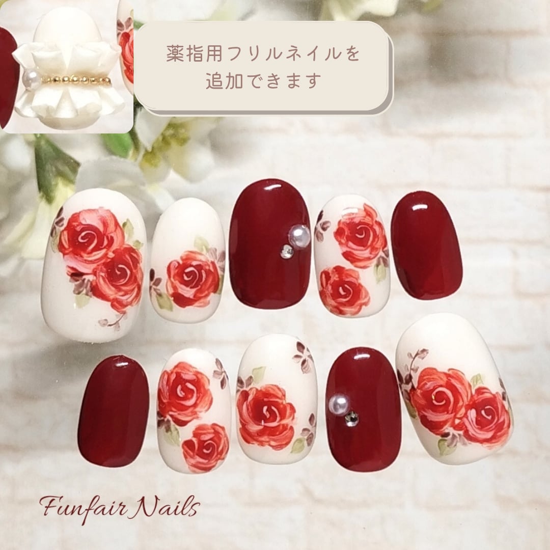 薔薇 ローズ ボルドー ネイルチップ ネイルチップオーダー オーダーネイル ネイル ネイルアート つけ爪 付け爪 オーダー 可愛い かわいい 大人可愛い ガーリー 個性的 個性 おしゃれ お正月 成人式 卒業式 結婚式 ブライダル ドレス 前撮り 袴 デート 着物 着物ネイル 和装ネイル 着物女子 和 フリル シフォン フリルネイル シフォンネイル お菓子ネイル チョコネイル チョコレート レリーフ カメオ アンティーク ゴシック クラシカル クラシック ロリィタ ロリータ 原宿系 原宿 3D 3Dアート 立体 手書き 手描き