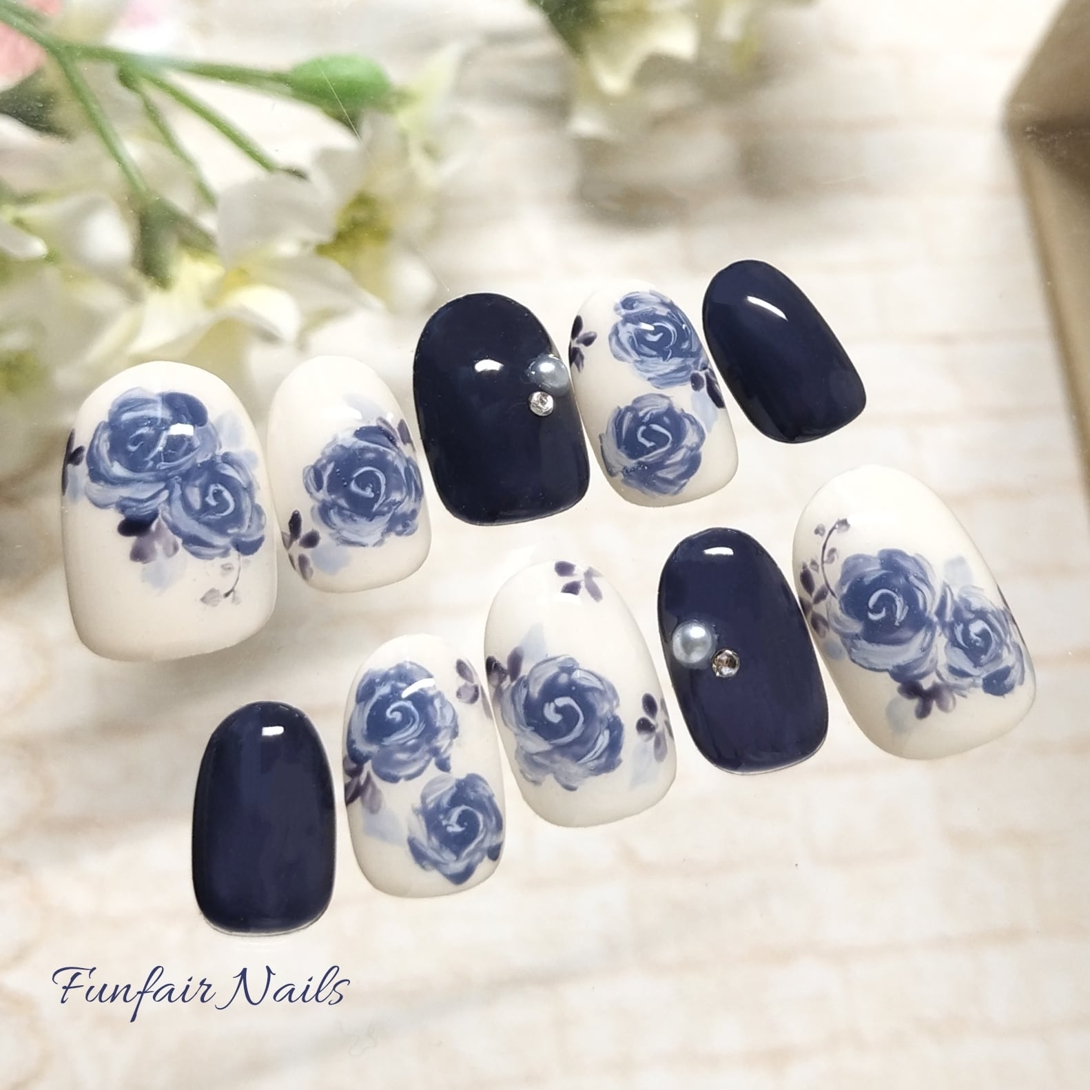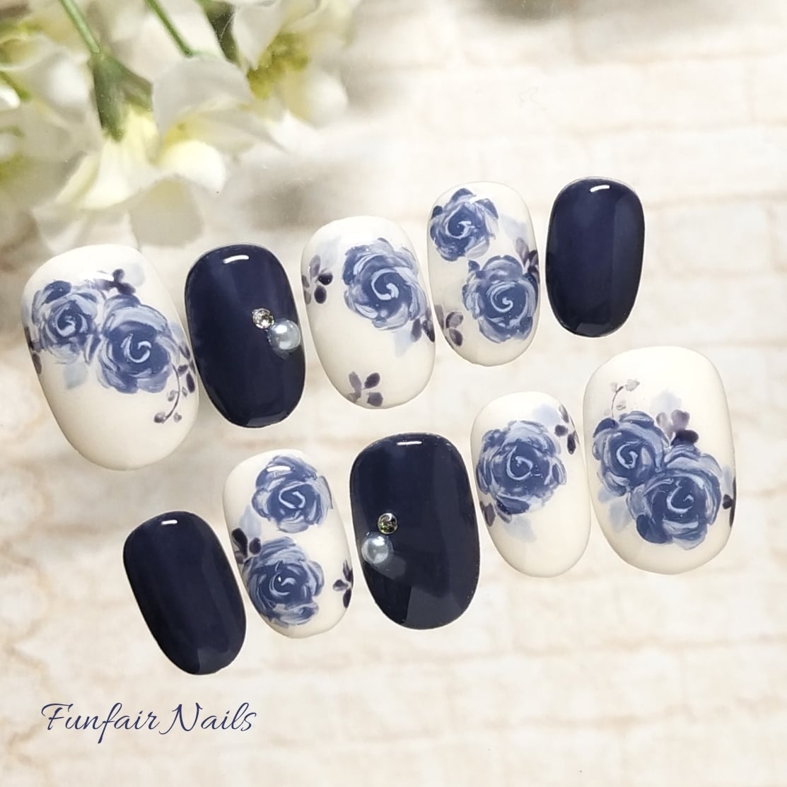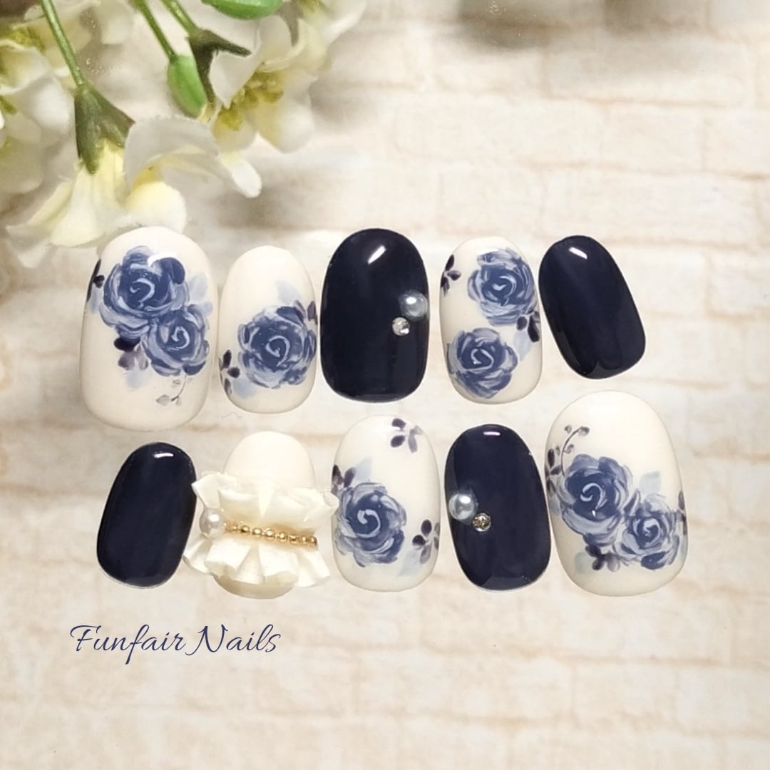 ローズクラシック(ダークネイビー) 〜 ネイルチップ 薔薇 ネイビー ブルー 〜